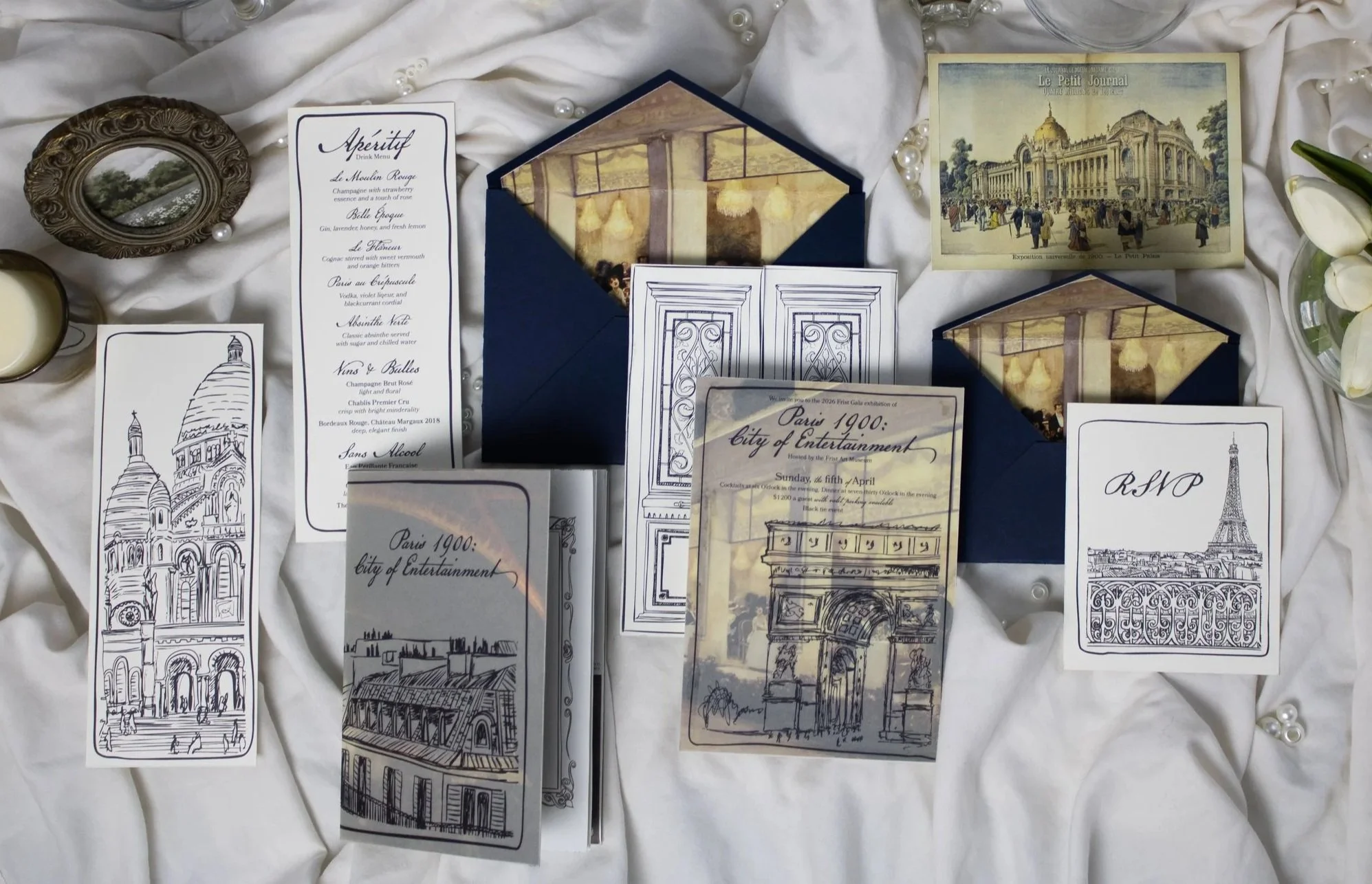 A invitation design for the Frist Art gala that is meant to capture the elegance and excitement of Paris 1900: City of Entertainment. This palette features cool, yet classic and tasteful tones to mirror the art that came from Paris in this era and bring that energy into the gala itself.